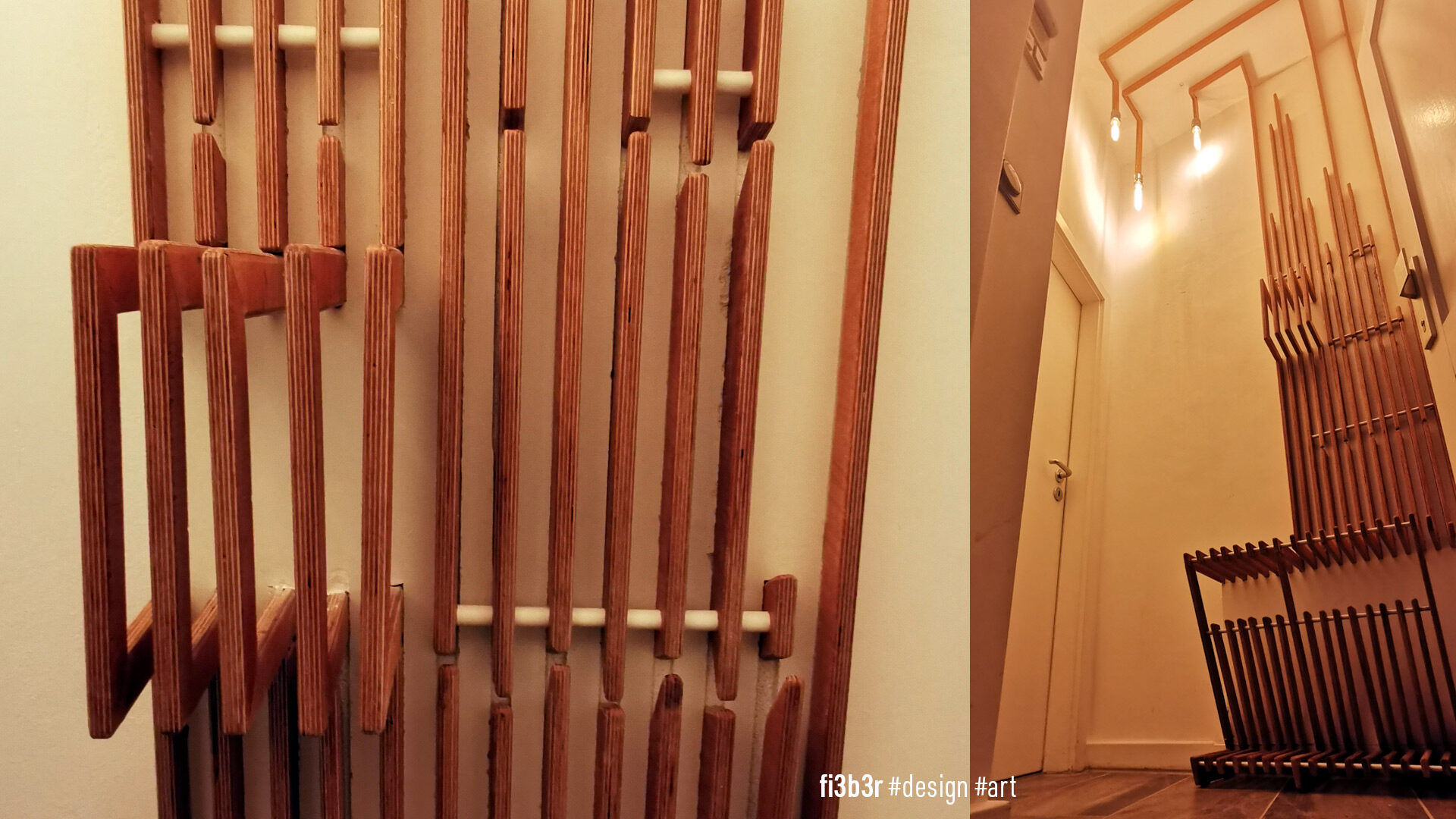 Woodlines bietet im schlanken Raum die Möglichkeit individuelle Kundenwünsche einer Garderobe ohne großen Raumbedarf umzusetzen.